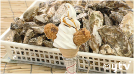 漁協直営の市場「五味の市」で頂ける名物が、カキフライをソフトクリームに