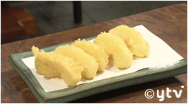 ビスケット、干し柿、りんごなど変わったものを使った天ぷらは、