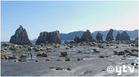 1500万年前のマグマ活動によってできた串本町の名所「橋杭岩」。