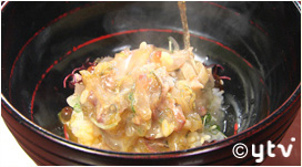 次に、天然の魚や貝を大葉、昆布、卵で和えて頂きます。