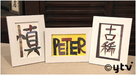大島紬のカッティングシートを使って簡単にオリジナルはがき作りも体験できます!