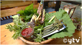山菜はご主人自らが、およそ600坪の敷地内で育てているものや、知人の山で摘んできたものを使っています。