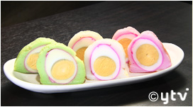 ゆで卵丸ごと1個を鮮魚(エソ)のすり身で包んだ蒲鉾「くじゃく」が名物!