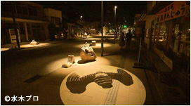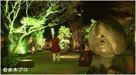 妖怪たちがライトアップされ怪しい雰囲気に!