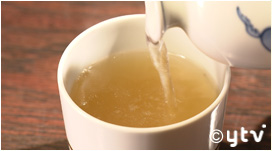 京都の高級茶葉と氷砂糖で作る蜜をかけていただく一品。
