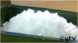 汲んできた海水を布でこし、炉に薪を入れて煮詰め続け 乾燥させると…