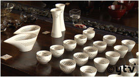 1863年創業の藤井酒造では蔵の一角を開放し、各地から選りすぐった酒器や限定の日本酒を販売!