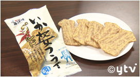 イカ姿フライは呉発祥で藤三でお菓子分野の売り上げNO1を誇る大人気のお菓子。