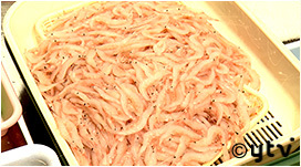 富山湾でしか獲れない、小粒で凝縮された濃厚な甘みが特徴の貴重な白エビの殻をむく作業を見学できる施設です。ぷりぷりとした食感の白エビは絶品です。