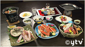 こちらの旅館では、料理長が厳選した活きた加能ガニを