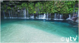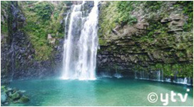 遊歩道を20分程歩くと目前に現れるのが、エメラルドグリーンに輝く「雄川の滝」!