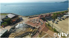 雲仙の海沿い、小浜温泉にある足湯「ほっとふっと105」は“長さ”日本一!