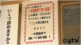 たこが入ったこちらの明石焼きは、難読漢字のテストに回答すると、正解の数で割り引きしてくれるサービスがあります。