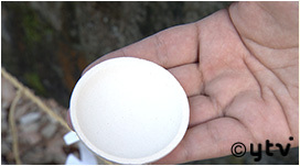 “かわらけ”に願い事を込めて息を3回吹きかけ、
