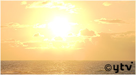 日没直前の日本夕陽百選の幻想的な夕焼けを前に愛を誓うと