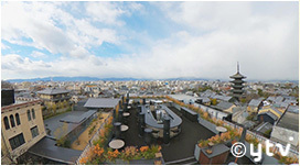 元々小学校の屋上だったこの場所から、八坂の塔や京都タワーなどを