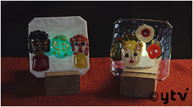 ガラスや天然石を切り貼りして、世界に一つのオリジナルランプを作ることができます。
