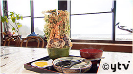 びっくり丼とは、高さおよそ50センチもある巨大天丼のことで