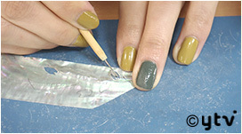 1ミリ以下に薄く切り取った貝殻を、漆器などにはめこむ伝統工芸で