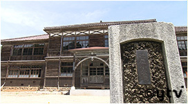 平成24年3月まで現役の木造校舎として国内最古とされていた、旧吹屋小学校(県指定重要文化財)。