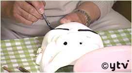 伝統的神事の備中神楽にまつわるお面の絵付け体験ができます。