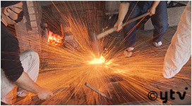 数多くの刀が並ぶ展示場は圧巻です。また、間近で見る古式鍛錬は迫力満点です。