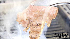 しゃぶしゃぶのように鉄板の上でお肉を滑らせる様に焼き、