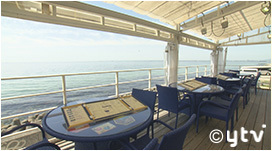 瀬戸内海が一望できる店内では、まるで船の上で食事しているようなデッキスペースがおすすめです。
