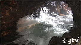 熊野灘から洞窟内に押し寄せる波はダイナミックです。
