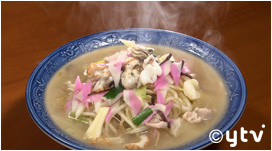 太麺を軽く揚げてからスープに絡ませて作るそぼろ皿うどん。