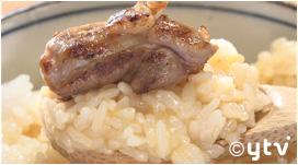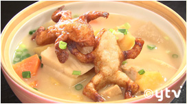 カエルの形をした薩摩揚げが入ったしょうがん炊きは