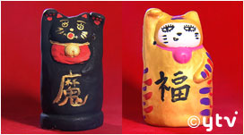 招き猫の絵付け体験では、形や色を選んで、自分が呼びたい福を招く事ができます!