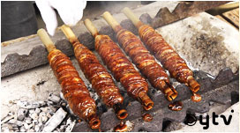 新鮮な太刀魚を竹の棒に巻き秘伝のタレに漬けて炭火で焼いた「太刀魚巻」。