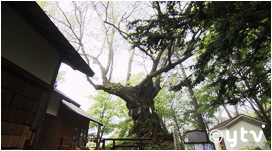 境内にある樹齢850年のご神木の周囲を回ると寿命が延びると言われ