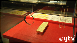 歴史を学んだ後は重さ12.5kgの金の延べ棒取り出しにチャレンジ!