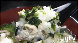 ふぐからとった出汁をベースにしいたけ、かんぴょうなどを入れ