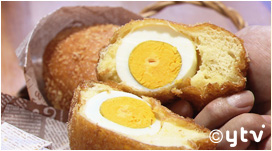 名物は「雲仙ばくだん」。中にはゆで卵がまるごと一個!