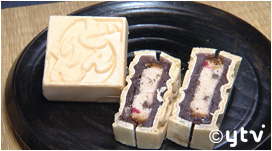 フルーツカステラとつぶあんを、パリッとしたもなかで包んだ