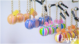 本物の飴を樹脂でコーティングした、飴アクセサリー。