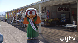 出水のゆるキャラ「つるのしん」もオススメする特産品売店。