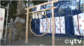 おみくじがついている矢を放ち、みごと輪を通れば、