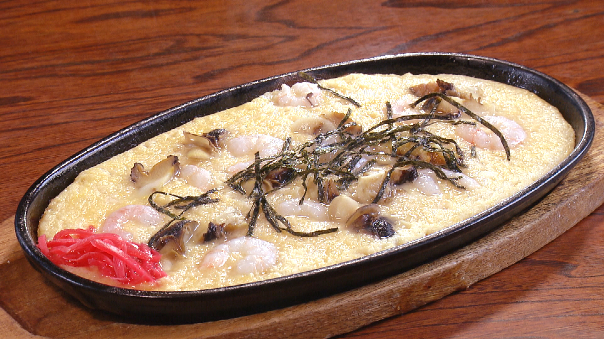 擦った山芋と卵を混ぜ合わせ、具材を加えて焼く