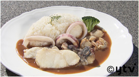 京都大学の名物「総長カレー」の新作「ブルーシーフードカレー」。