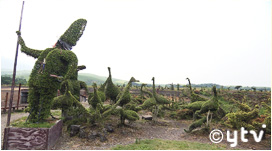 やまなみハイウェイ沿いに突如現れる800体ものトピアリー。