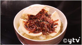 創業1946年の金沢で有名な老舗佃煮店が開発した器茶漬け。モナカの中に特別に味付けした佃煮が入っており、割ってお茶をかけると、モナカはあられのような