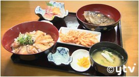 漁港直営の「みなと食堂」ではその日の朝、獲ったばかりの鮮度抜群のカンパチが