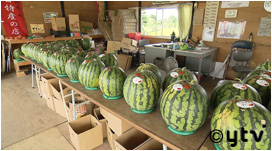 “朝日スイカ”とは、朝日地区の認定された農家だけが作れるブランドスイカ。
