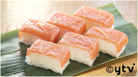 マス寿司を製造・販売する老舗「味の笹義」。脂がのったマスの腹身を使用した“特撰マス寿司”は熟練の職人が全て手作業で作ります。