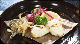身と白子を一度に楽しめる贅沢グルメです。