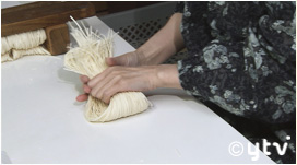「大門そうめん」は、半生の工程で丸めてから乾燥させます。